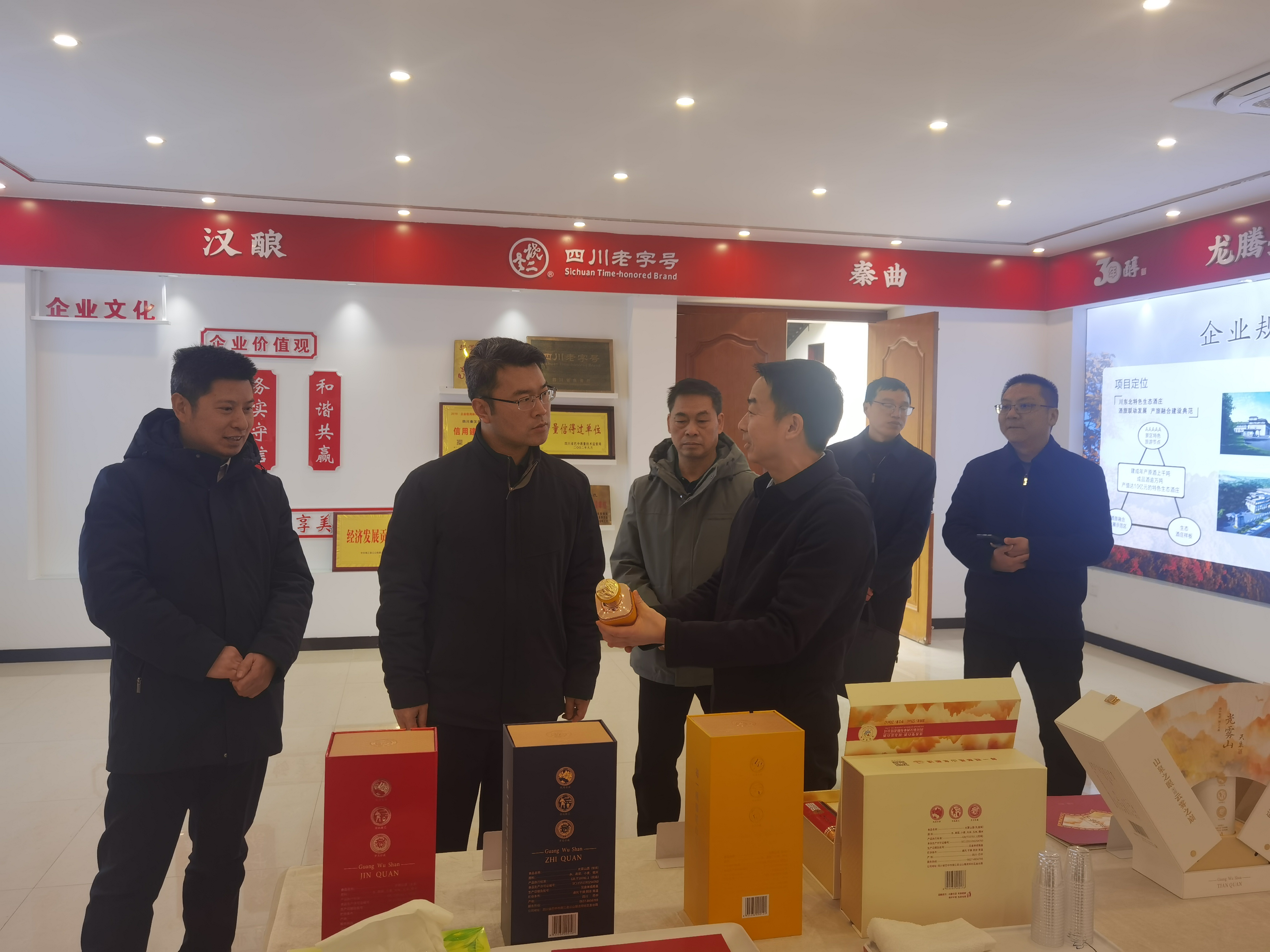 2024年2月23日下午,南江县委副书记、县长韩君才带队到秦汉酒业调研、指导工作。公山镇党委书记岳伟陪同调研。